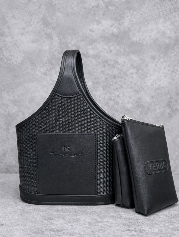 Materiales: Rafia negra y Cuero Ecológico